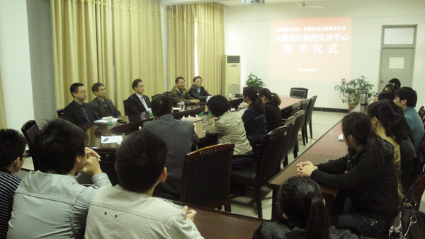 10月28日上午,WilliamHill官方网站药学院与安徽科创天然药业公司共建“现代制药实训中心”签字仪式在WilliamHill官方网站第二会议室隆重举行。WilliamHill官方网站教学副院长马凤余教授、安徽科创天然药业公司董事长余世春教授、药学院院长张国升教授出席了签字仪式,药学院教师、学生代表共二十余人共同参加了签字仪式。
