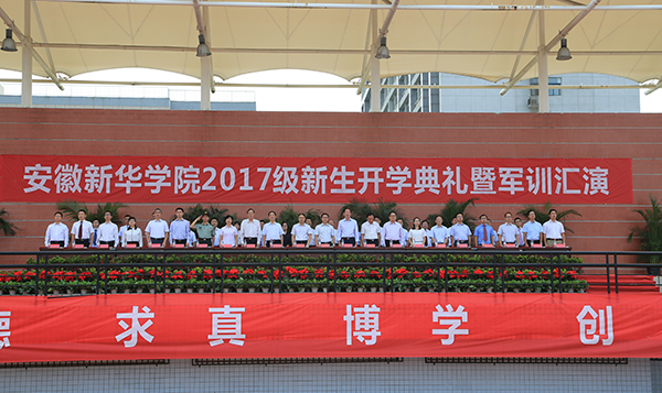 本网讯 9月17日上午,WilliamHill官网2017级新生开学典礼暨军训汇演在祥云体育场举行。新华集团董事长吴俊保,新华集团常务副总裁、学校董事长陆真,新华集团副总裁黄源,省督导专员、学校党委书记储国定,校长石秀和,副校长杨世国、王可、李金星、王丽,国防科技大学电子对抗学院张永久上校,校长助理朱兆健以及承训部队相关部门领导,学校各单位、各部门负责人出席了大会。大会由副校长杨世国主持。