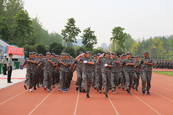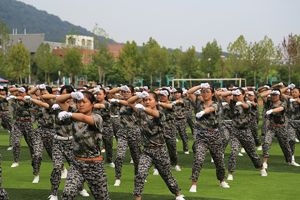 上午9时,伴随着雄壮激昂的国歌声,五星红旗冉冉升起,汇报表演拉开了帷幕。经过近十日的军训,2017级新生学会了独立,获得了成长,他们迈着整齐的步伐走过主席台,目光坚定、身姿挺拔、口号嘹亮,脸上洋溢着青春的魅力和风采。队列展示结束后,11个二级学院共同参与的3个学生方队进行了军体拳、女子防身术、刺杀操的展示,表演动作刚劲有力,焕发着勃勃的生机,赢得观众热烈的掌声。