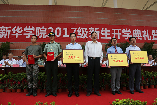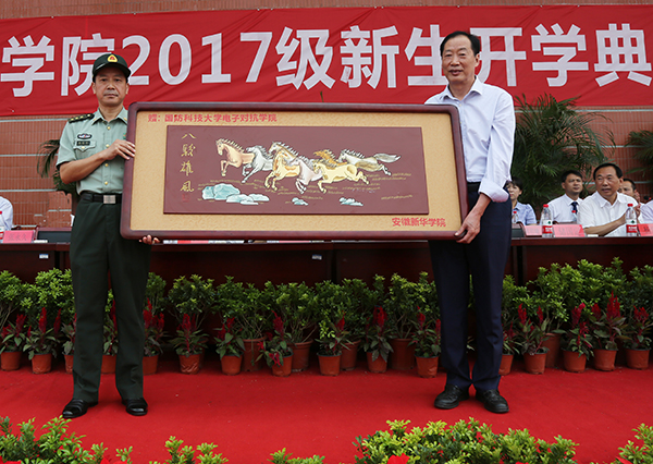 开学典礼上,校长石秀和代表学校向2017级新生的到来表示热烈欢迎。他结合自己的经验,与新生分享了几点感悟:一是把“求真”当作天职。希望大学生们满怀好奇之心,敢于探索未知,追求真知,获得新知,在求学问道的路上既不要盲目自大,更不要妄自菲薄,在正确评价自己的基础上,勇于挑战,做一个幸福快乐的自己;二是让“养德”成为必修。在大学,学生们要努力学会用正确的立场、观点和方法分析问题,善于把握历史和时代的发展方向,树立正确的认知观念,秉承自觉的道德养成,培养健康的生活方式,形成完备的知识体系,成为新时期德才兼备之人;三是以“务实”实现理想。身处在一个伟大的变革时代的大学生,应该要珍惜宝贵的青春年华,从大处着眼,从小处着手,既要仰望星空,又要脚踏实地,以“务实”实现自己的理想;四是用“创新”追求卓越。具有开拓创新精神是当代大学生必备的品质,大学生要有好奇心、自信心,有独到的见解和想法,还需要勤奋刻苦和坚忍不拔的品格,敢于打破旧常规,勇于探索新领域。“努力吧,孩子们!奋斗吧,新华的学子们!”最后,石秀和预祝全体新生在新华的每一天都能快乐充实,每一天都有新的收获,以最优异的成绩报答父母,以最优秀的表现致谢老师,以最卓越的品格汇入到祖国建设的洪流中去。