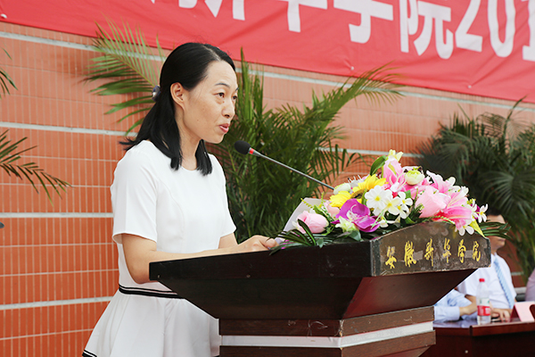信息工程学院教师代表张怡文也向同学们送去了真诚的祝福和诚挚的嘱托,希望同学们珍惜大学时光,珍惜校园环境,以高昂的斗志、饱满的热情投入到学习生活中,做到“不负大学,不负青春”。