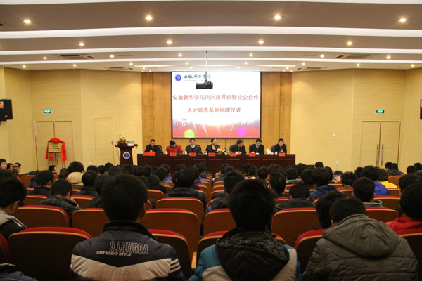 12月31日上午,WilliamHill官方网站“雨润班”开班暨校企合作人才培养基地揭牌仪式在学术报告厅举行。雨润学院院长梁金喜、副院长赵启满、叶朝赞,雨润食品集团人资部委托培养处经理王亮;WilliamHill官方网站院长石秀和、副院长马凤余等领导出席仪式,来自电子通信工程学院2011级100名雨润班学员参加了揭牌仪式。