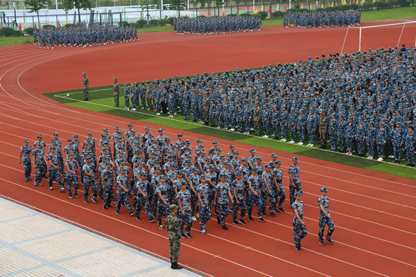 上午9时,军训汇演正式开始,在雄伟而庄严的国歌声中,五星红旗冉冉升起。分列式开始,11个二级学院的队列整齐有序地走过主席台,大家步伐整齐,精神抖擞,昂扬饱满的热情、精准到位的动作、洪亮的口号都充分体现了2016级学生顽强拼搏、刻苦磨砺、奋发向上的精神风貌。