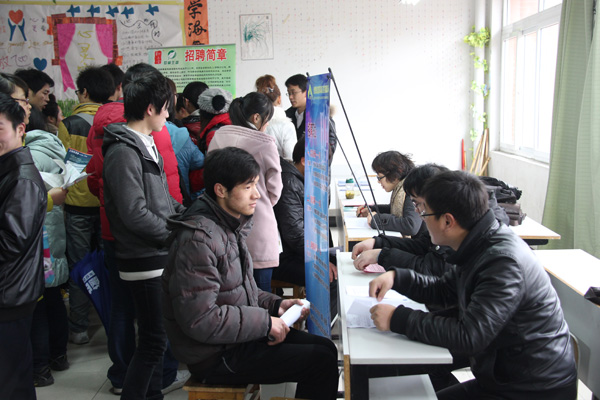 上午9时许,图书馆门前聚集着来自在肥各高校的约2000名参加招聘会的毕业生。副院长袁种宝、招生就业办公室及各二级学院相关负责同志先后到达招聘会现场了解情况,指导工作。安徽省大中专毕业生就业指导中心主任鲍勇、副主任闫明圣等亲临现场,检查相关工作开展情况,并亲切会见了部分省内外用人单位负责人,详细了解了用人单位的需求情况,对他们来校招聘表示欢迎和感谢。