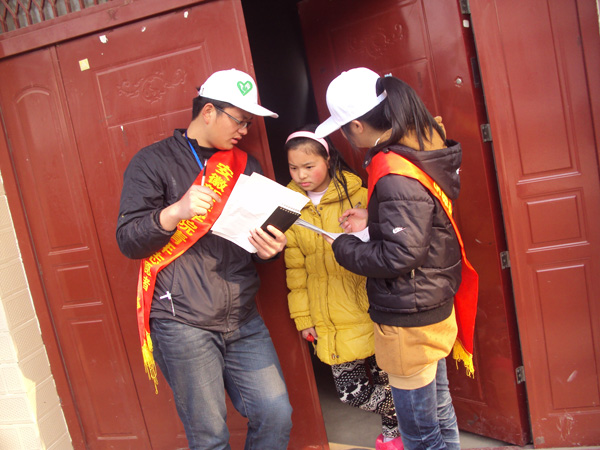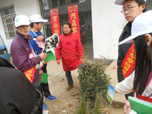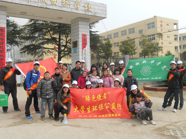 合肥市高新区城西桥村的街上除了往日的村民,还多了十几个头带白色的帽子,肩批红色绶带的一群大学生,他们就是WilliamHill官网青年志愿者协会环保社的成员。10 日早上,志愿者们在学校图书馆门前集合,由是多是第一次走进农村,他们都显得很兴奋和斗志昂扬。“昨晚我兴奋的一夜没睡!”同行的唐雪花等几个女生笑着说。志愿者为此次活动的准备从开始策划、制作调查表、准备教案等,忙碌却兴奋。负责人洪娜特地通知每个人自带水杯,绿色环保从自己做起。