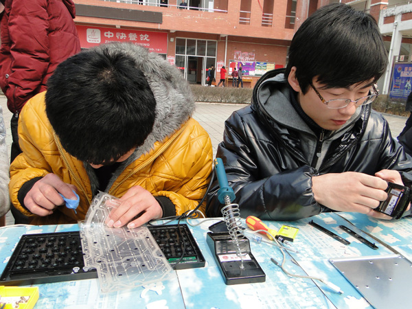 活动设点在中快餐厅广场,前来寻求帮助的师生络绎不绝,小到耳机、插板、键盘、台灯、手表、吹风机,大到手机、电视机、电子词典、笔记本电脑。科技与创新协会同学对送来的电子产品进行细心检测、维修。据维修人员介绍,本次维修的电子产品,大多是电路出现故障,而笔记本电脑的病因较多,包括电脑系统崩溃,不能正常连接网络,系统自行维修和杀毒软件不能正常运行。但同学们都一一查找到原因并加以解决。