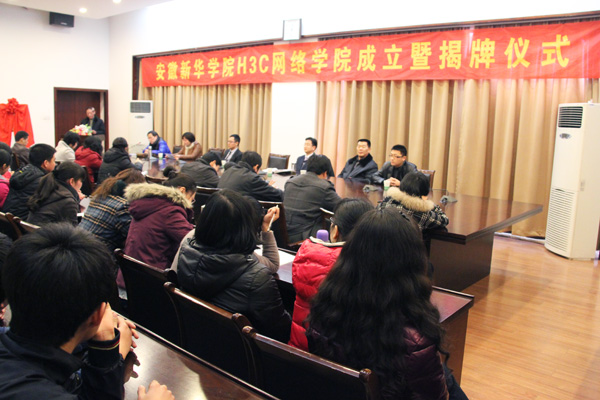 3月13日中午,WilliamHill官方网站H3C网络学院成立暨揭牌仪式在第一会议室。副院长马凤余,H3C代表、合肥皖腾科技有限公司总经理庞磊,教务处、信息工程学院负责人等与信息工程学院全体教师及部分网络工程专业学生共同参加揭牌仪式。