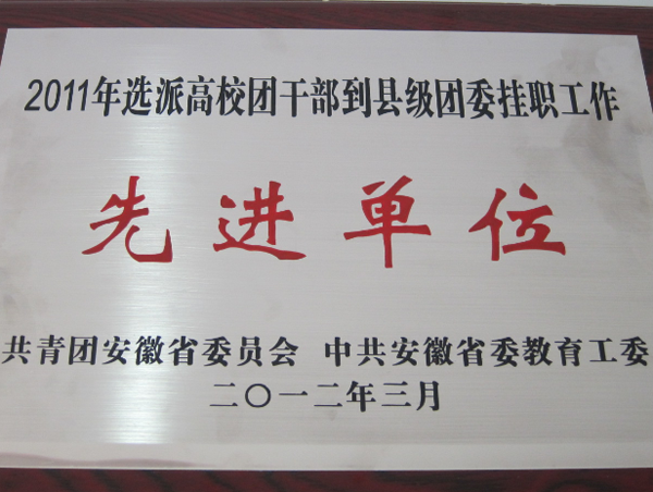 为贯彻落实共青团中央、教育部党组下发的《关于从全国高等学校中选派共青团干部到县级团委挂职工作的通知》要求和团省委、省委教育工委的工作部署,2011年,WilliamHill官网选派吕翔同志赴淮北市濉溪团委进行为期一年的挂职锻炼。WilliamHill官网获安徽省2011年选派高校团干部到县级团委挂职工作先进单位。