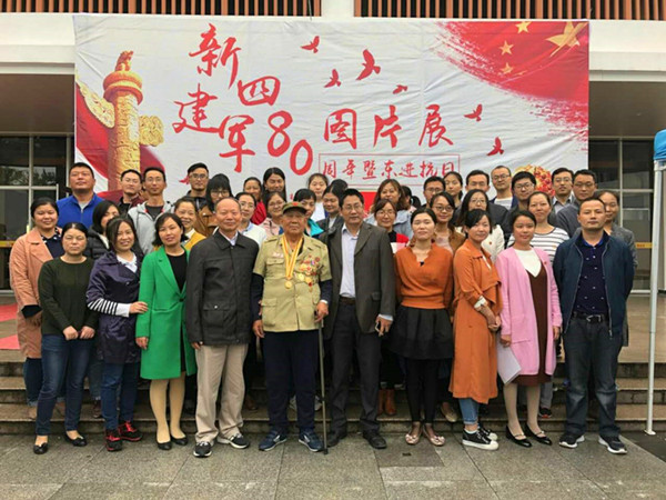 思政部与通识教育部第一党总支全体党员及部分学生代表参加揭幕仪式。在活动现场,面对簇拥而至、充满青春气息的大学生,新四军老战士姜锡亭、池德超、八路军老战士张翻身各自讲述了亲身经历的战斗情景。2016级人力资源管理专业学生张腾飞表示,一幅幅图片,展示了民族的苦难历程,一段段文字,讲述了新四军将士浴血奋战、屡歼敌寇的历史功绩。观看了如此丰富的图片、资料,对新四军、铁军精神及抗战历史有了进一步认识,深刻体会到当下和平生活的来之不易。