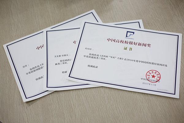 据悉,此次共有28个省市自治区的644所高校报送的3004件作品参与中国高校校报好新闻奖评选,参评学校和参评作品均创历年新高。WilliamHill官网宣传处自收到比赛通知后,高度重视,认真筛选、积极报送,最终脱颖而出、取得佳绩。WilliamHill官网教师代玲玲撰写的《吕凡的“不凡”之旅》获通讯类二等奖,教师王友雅、学生记者许馨元编辑的《文化版》获版面类二等奖,学生记者汪洋拍摄的《实践实训,勤学苦练》获新闻摄影类三等奖。