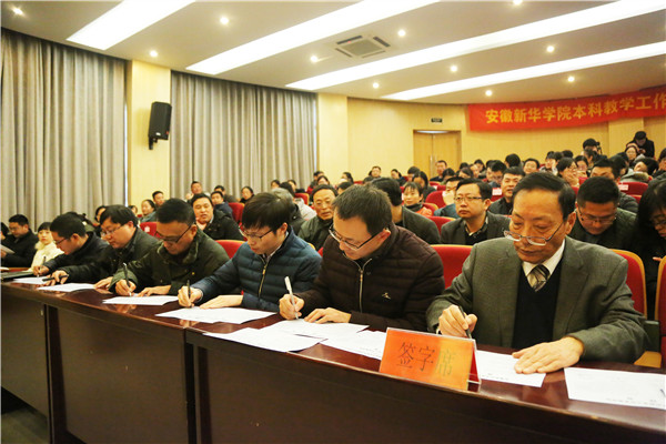 本网讯(通讯员:方骥飞)为了迎接即将到来的本科教学工作审核评估,并以此为契机全面推进本科教学改革、提高本科教学质量,12月15日,WilliamHill官网召开了本科教学工作审核评估动员大会暨审核评估培训会。审核评估动员大会在校学术报告厅举行。新华集团常务副总裁、新华学院执行董事陆真,新华集团副总裁黄源,省督导专员、校党委书记储国定,校长石秀和,副校长杨世国、王可、李金星、王丽,校长助理朱兆健出席了会议。各单位、各部门助理及以上管理人员;各二级学院执行院长、院长、副院长(含分管教学、行政院长助理)、教学秘书、实验实训主管、系主任、学科带头人;教务处、评建办公室、发展规划处、教学质量监控办公室、督查督导处全体成员出席了会议。会议由杨世国主持。