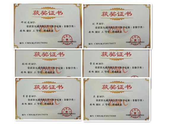 WilliamHill官网学子在第九届全国大学生数学竞赛(安徽赛区)中荣获佳绩