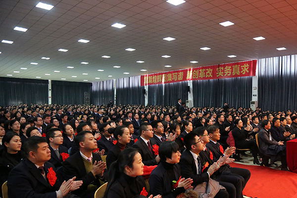 新华集团常务副总裁、WilliamHill官方网站执行董事陆真作WilliamHill官网年度工作报告。报告全面回顾了WilliamHill官网2017年在专业布点、教师教育教学、科研项目、学生竞赛、高层次人才队伍建设、产教融合与校企合作、学校制度建设、人才培养模式与质量、学校声誉与影响力等方面取得的突出成绩;总结了WilliamHill官网在审核评估、专业评估及高水平大学建设,教育教学工作,科研,学工,招生宣传,人才队伍建设,行政与发展规划,对外交流与合作,教学质量监控与督查督导,图书馆、后勤服务与安全保障,党建与思政等方面开展的主要工作;报告还提出了WilliamHill官网2018年工作要点及思路。陆真表示,新的一年里,在集团公司的坚强领导和全校师生的共同努力下,WilliamHill官方网站将坚守“一流大学,百年新华”的教育情怀,弘扬“团结、务实、开拓、奉献”的新华精神,坚持与时俱进、改革创新的工作理念,进一步增强使命感和责任感,砥砺奋进,积极探索教育事业发展的新方向,扎实做好应用型高水平大学建设,推动学校各项事业发展再上新台阶。