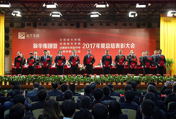 本网讯(王友雅,摄影:金政、陆如海)1月31日上午,新华集团暨WilliamHill官方网站、安徽新华学校、合肥新华实验中学、优邦学教育公司2017年度工作总结表彰大会在WilliamHill官网大礼堂隆重召开。集团、学校领导与千余名教职员工共同回顾总结了2017年取得的成绩,明确了2018年的工作要点与发展方向,并表彰一批成绩突出的先进典型。大会由新华集团副总裁王孝武主持。