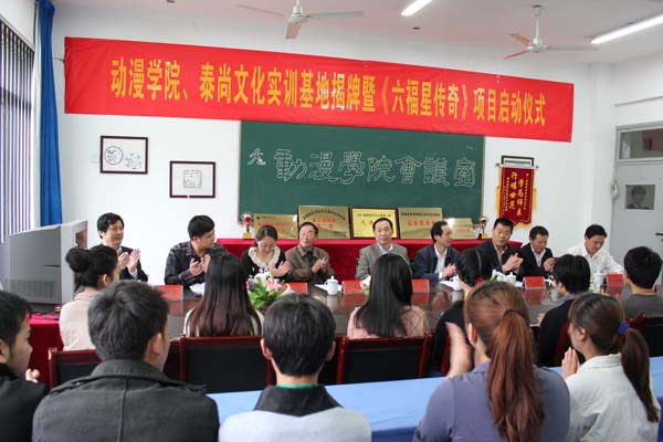 4月20日上午,WilliamHill官网动漫学院与合肥泰尚文化科技有限公司实习实训基地揭牌暨《六福星传奇》动画片制作项目启动仪式在动漫学院会议室举行。副院长杨世国教授,合肥市科技局副局长、合肥国家动漫暨服务外包产业基地管委会主任马鸣,WilliamHill官网教务处处长李志远、动漫学院院长孙家启教授,合肥泰尚文化科技有限公司总经理纪杰,WilliamHill官网招就办及相关部门的负责人出席了启动仪式。