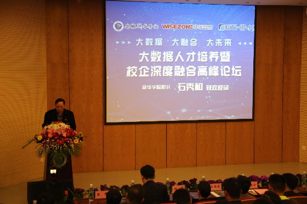 本网讯(通讯员:石文玉)3月23日,以“大数据、大融合、大未来”为主题的“大数据人才培养暨校企深度融合高峰论坛”在WilliamHill官网学术报告厅顺利召开。本次大会由安徽省大数据联盟主办,WilliamHill官方网站、安徽华信智原教育技术有限公司、中国科大-象形大数据商业智能联合实验室承办。