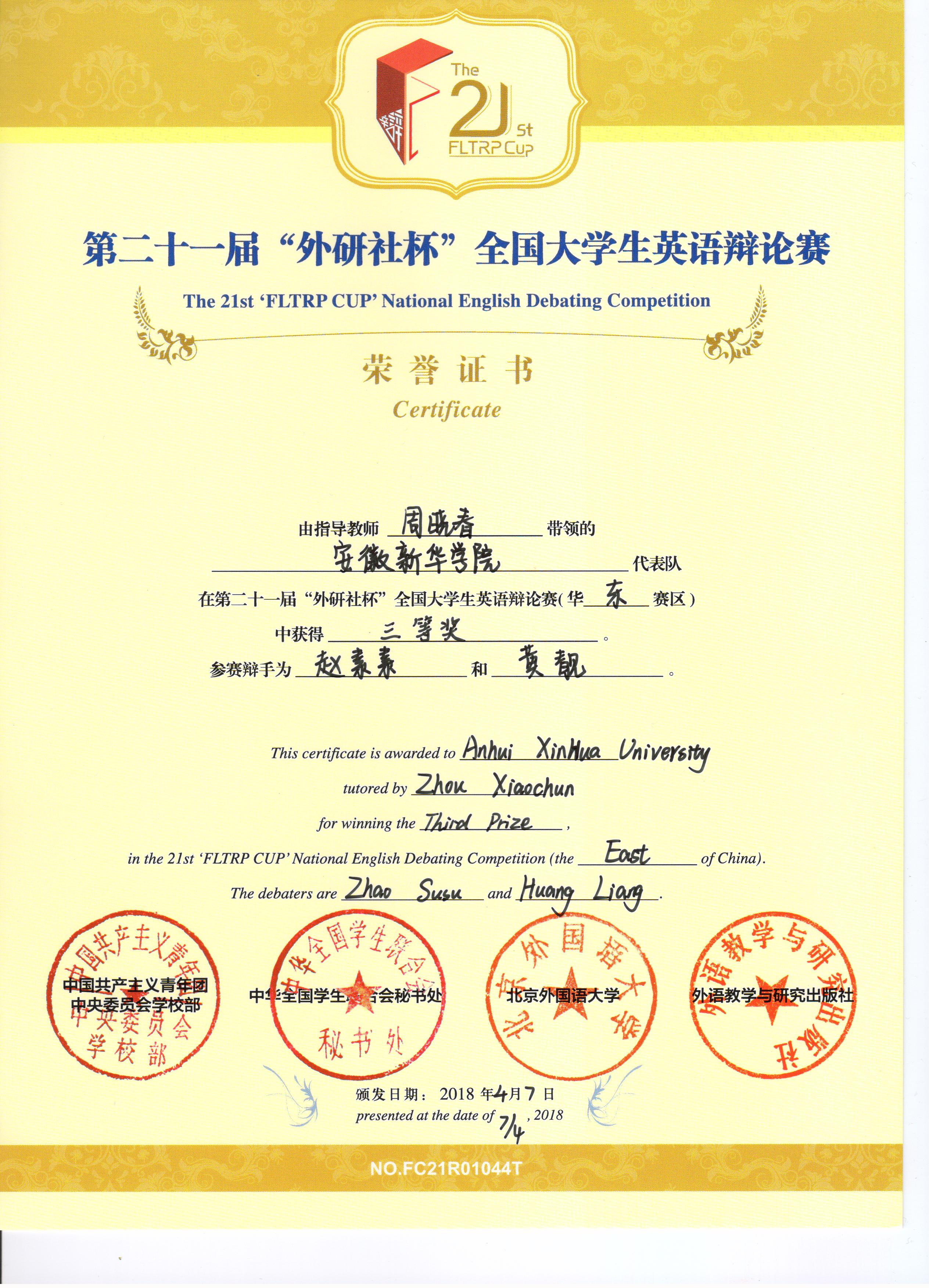 “外研社杯”全国大学生英语辩论赛是由共青团中央、全国学联及北京外国语大学联合主办,外语教学与研究出版社承办,是目前国内规模最大、水平最高的英语口语赛事,属于B类学科竞赛。大赛采用BP(英国议会制辩论)赛制。本届比赛共分为华北、华东、华南、华西四大赛区。 本次华东赛区汇集了来自浙江省、江苏省、山东省、安徽省、上海市包括复旦大学、上海外国语大学、南京师范大学、中国人民解放军海军航空大学等109所本科院校参赛,共218名参赛选手同台竞技。WilliamHill官网代表队沉着应战,不畏强敌,展示了较为扎实的英语语言基本功、逻辑思辨能力和良好的精神风貌。