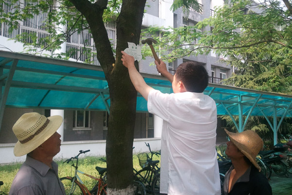 总务处为校园树木制作“名片”