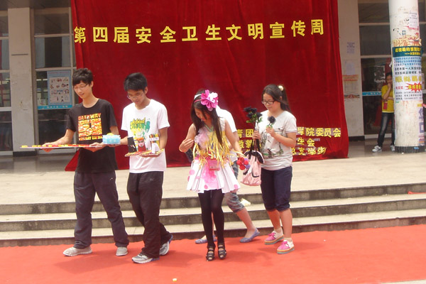 本次开幕式主要分为图片展、模型展和环保时装秀三个部分。在中午的启动仪式上,各二级学院展出了他们安全卫生文明的主题图片和模型;各二级学院参加走秀的模特将环保理念通过自身的服饰活灵活现地展现出来。土木与环境工程学院学生会孙义说,作为理工科的专业的学生,结合自己的专业特色,本次活动主要想展示的是环保和安全两个主题,废弃的一次性筷子、旧纸板在他们的努力下,变成了美丽的房屋、精致的金字塔等模型,通过科学的计算,使造出的模型能够稳固。校学生会表示将会从设计理念、整体效果、是否与主题相关三方面评出优秀设计模型。