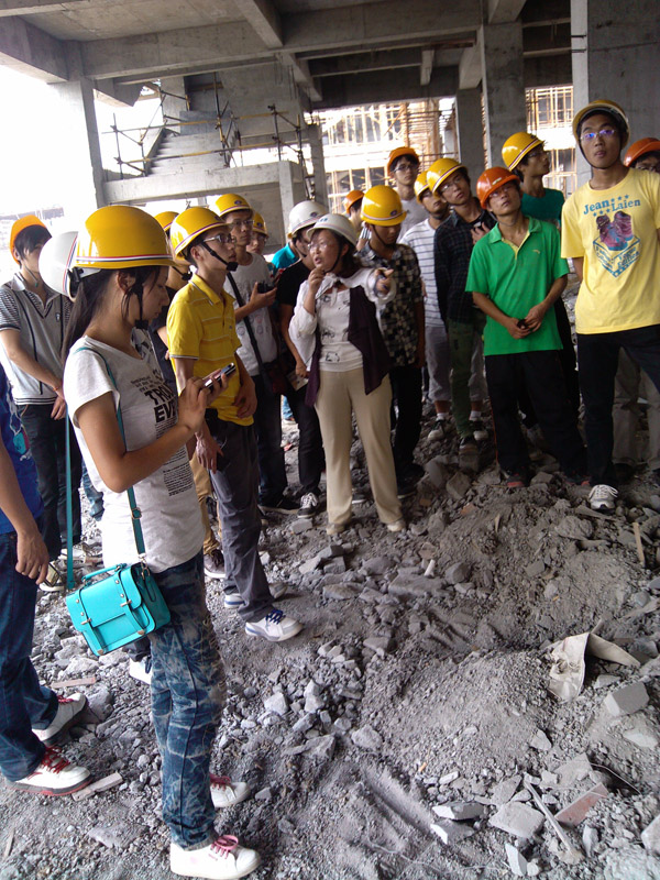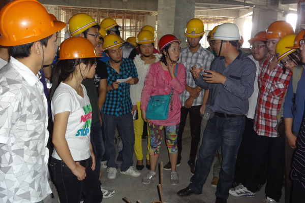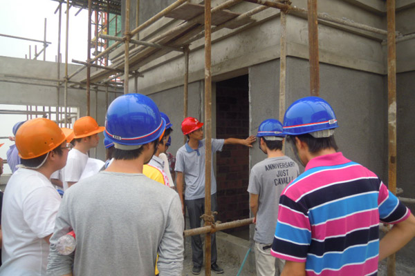 实习过程中,虽然天气炎热、工地条件艰苦,但是每位同学都十分珍惜难得的学习机会,通过参观、讲解和现场讨论,了解了土建工程的设计要求,构造型式和使用要求;了解了各种结构形式及布置方案、节点联结方式和受力特点;了解了建筑物的施工过程、构件的制作和建筑施工机具的使用情况等。相关单位派出工作人员为同学们做现场讲解,老师们也及时为同学们答疑解惑。