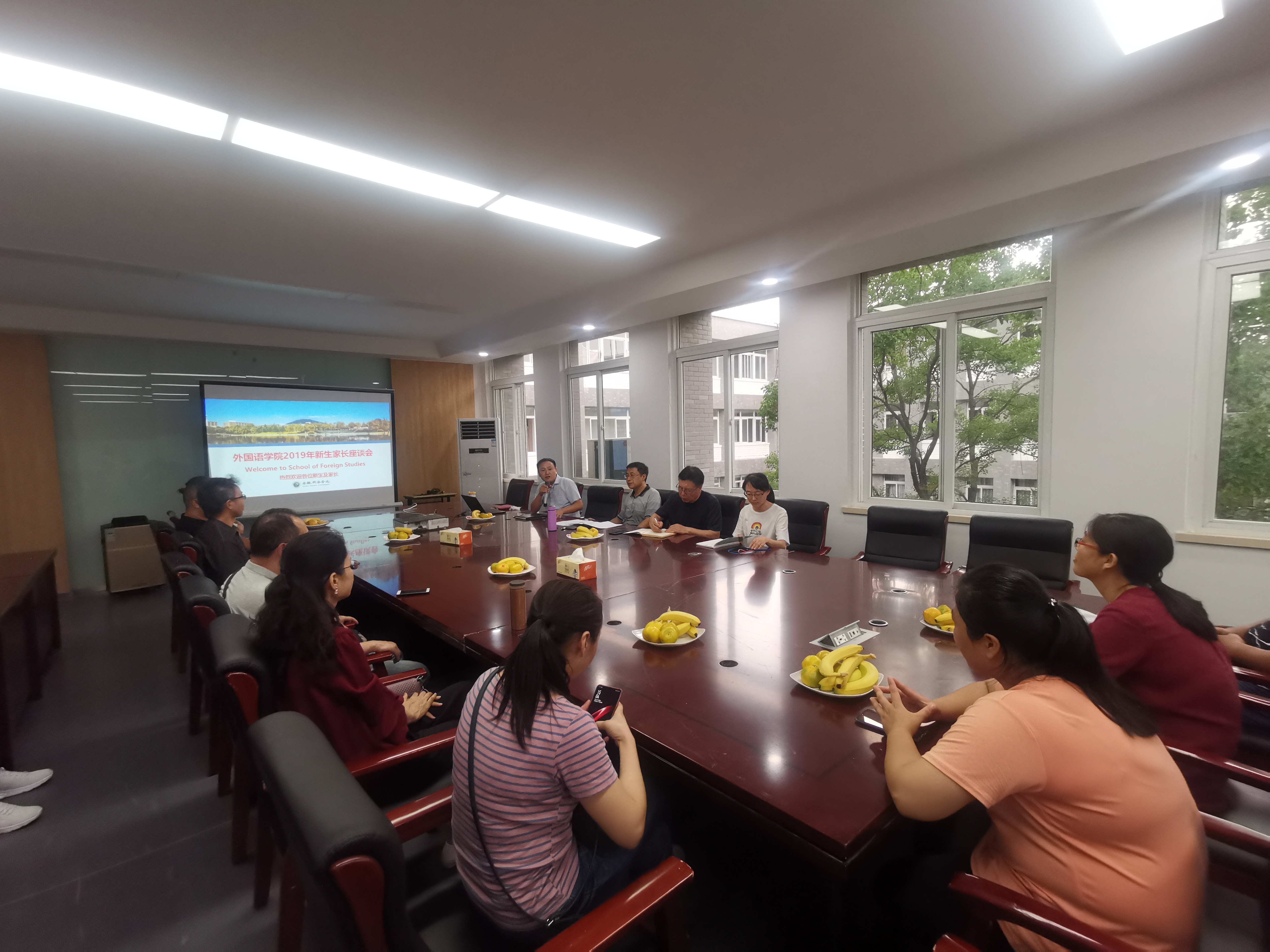 本网讯(通讯员:王婷)为促进家校共育,让新生家长更好地了解学院的基本情况,进一步增进学校与家长间的交流与信任。8月31日下午外国语学院召开2019级新生家长见面会。参加本次见面会的教师有外国语学院教学副院长王志宏、副院长杨光、行政秘书王婷、教师代表宋志强、周晓春以及部分新生家长和学生。