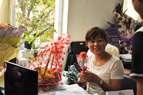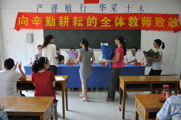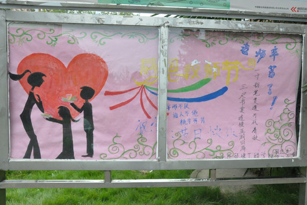 为了感谢老师们的教育之恩,土木与环境工程学院各学生组织也用最真挚的心和最饱满的热情,向老师们献上了深深地祝福。学生会、助理团的同学们早早在教学楼门前挂起了横幅、海报等,营造浓浓的节日氛围以表达自己对老师的敬爱之情。同时倡议各班级同学注意文明礼仪,认真学习实践,以自身的提高向老师们献上最好的节日礼物。各班级同学也用各种方式表达了对老师的祝福。有的班级在教室的黑板写上对老师的祝福语,有的给老师发去祝福短信,还有的班级在上课开始时,一起向老师道一声:“辛苦了!”。各班级还派出代表们来到老师的办公室,或送上自己制作的小纪念品,或送上一束鲜花,或送上一个果篮,以表达对老师们最诚挚的祝福和衷心的感谢。