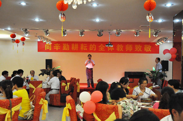 在随后举行的教师节晚宴上,副院长袁种宝和资产处负责同志出席了晚宴,互致节日祝福,共话土木与环境工程学院美好明天。欢歌笑语此起彼伏,真情互动高潮迭起,真诚沟通温暖人心。期间,老师们还表演了各自拿手的节目,展现了土木与环境工程学院教职员工的风采。
