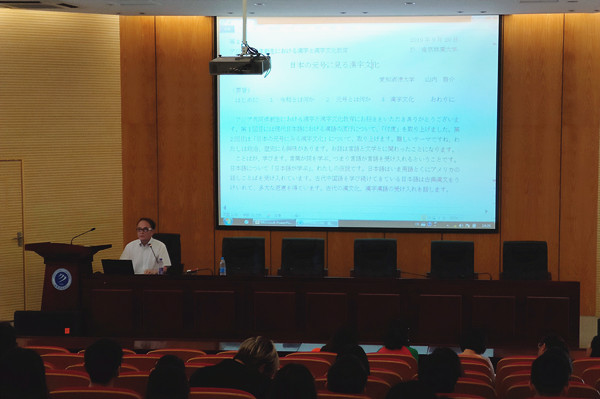 首先,讲座以个人取名为切入点,强调了命名对于个人而言的重要性。其次,山内教授以日本新天皇年号“令和”为例,不仅为大家讲解了该名称的由来、寓意,也为大家展示了这些汉字在日本汉语典籍中的诠释,同时指出历史上年号的写法、读法的特殊性,以及与汉字的渊源等。最后,山内教授在结语中说年号不仅反映了汉字文化,也是统治者对空间乃至时间的掌控欲的体现。讲座结束后,山内教授亲切回答了学生所提出的诸多问题,并详细做出解答,讲座在热烈的掌声中圆满结束。