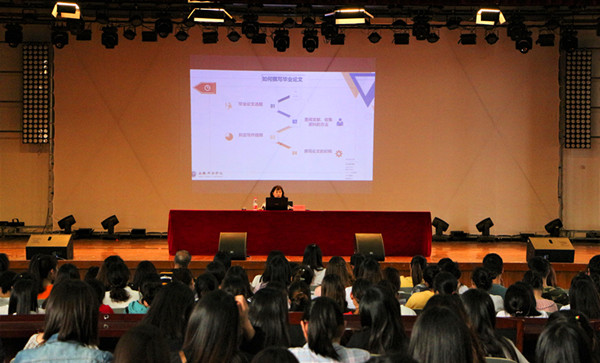 动员会后,李海燕就“如何撰写社科类毕业论文”进行专题报告,她围绕为什么要写毕业论文、怎样做好毕业论文等方面向全体毕业生做了深度解读。她从毕业论文选题、查阅文献和收集资料的方法、拟定写作提纲、撰写论文等方面做了详细介绍,要求学生运用正确的理论,具备良好的文献检索和整理分析能力,保持严谨的论证和卓越的学术精神,完成一篇高质量的毕业论文。同时,她也对论文的基本框架与格式要求进行了细致解读,要求学生做到条理清晰、结构完整、格式规范。