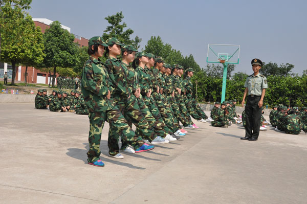 骄阳下,她们穿上统一的着装,扎起飘逸的长发,做着重复的动作,整齐的队伍中透露出了几分准军人的英姿,一股无形的力量蓄势待发。女生连的训练场地在校园东篮球场,这里几乎没有任何树木可以遮荫,尽管如此,在刺眼的阳光下,女生们一丝不苟地做着各种训练,“向右——看!”,“起步——走”。有的同学身体不适,也仅仅在边上休息一会,就接着训练。汗水从脸颊滑落,微风掠过,吹乱了她们的头发,她们并没有被干扰,依旧遵守严明的纪律。带着坚定信念,她们认真听着教官的指导,仔细看着教官的示范,在年轻的战场上接受着青春的洗礼,在大学的课堂上上好这开学第一章。看似柔弱的女生,骨子里满是坚强,一点都不比男生弱。