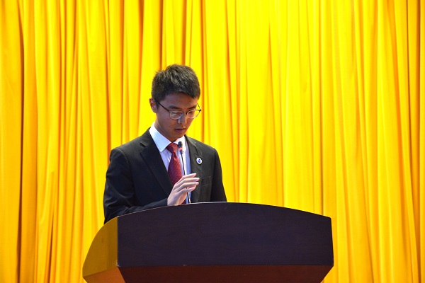 大会在庄严的团歌声中拉开帷幕。首先,由学生联合会第十八届主席曹震作2018—2019年度工作报告。