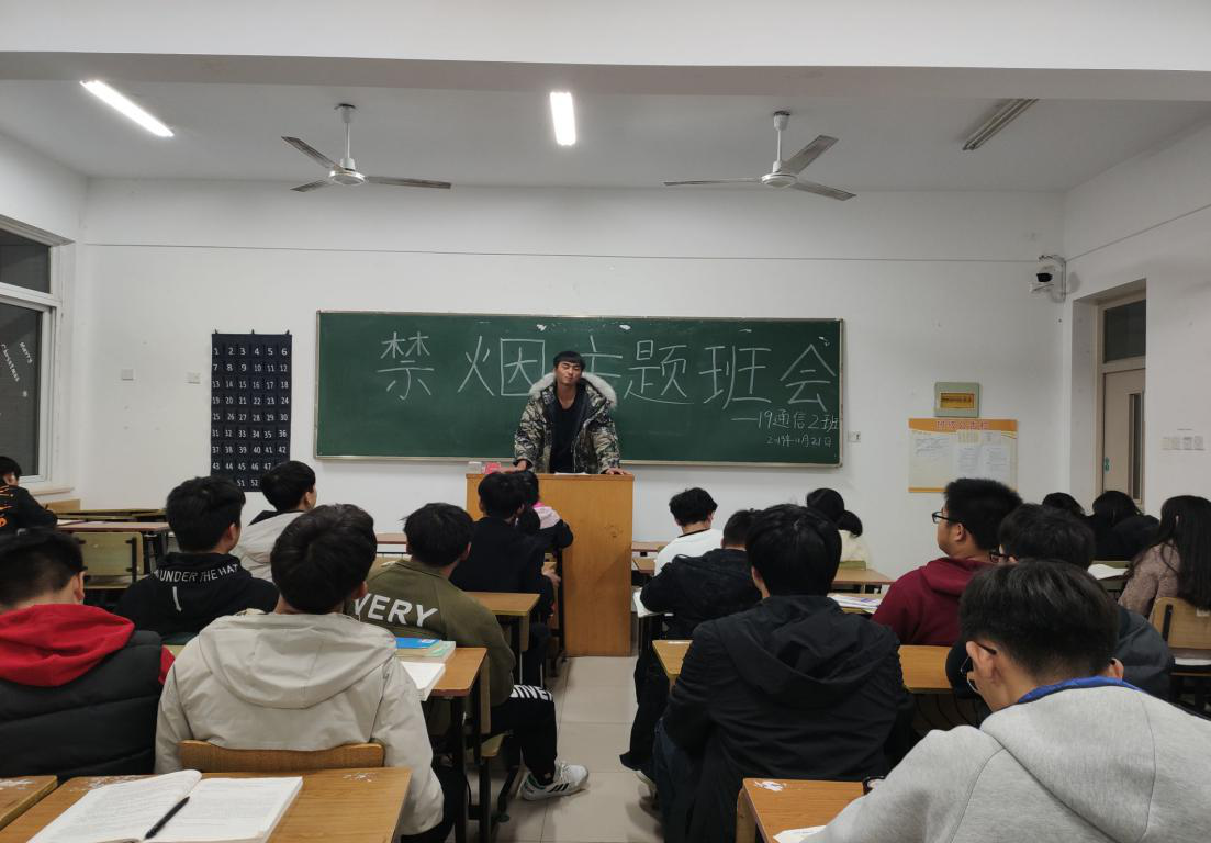 各二级学院通过召开禁烟主题班会和组织全体住宿学生在《宿舍禁烟倡议书》上签字等形式,加强吸烟有害的宣传教育。