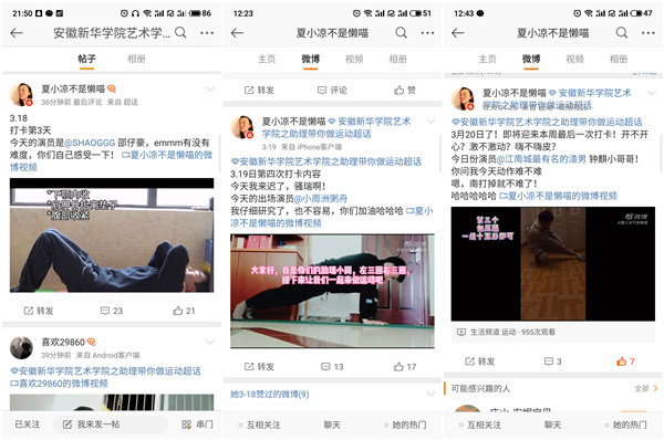 艺术学子“战”疫日常之微博超话—辅导员助理与你“E”起云锻炼