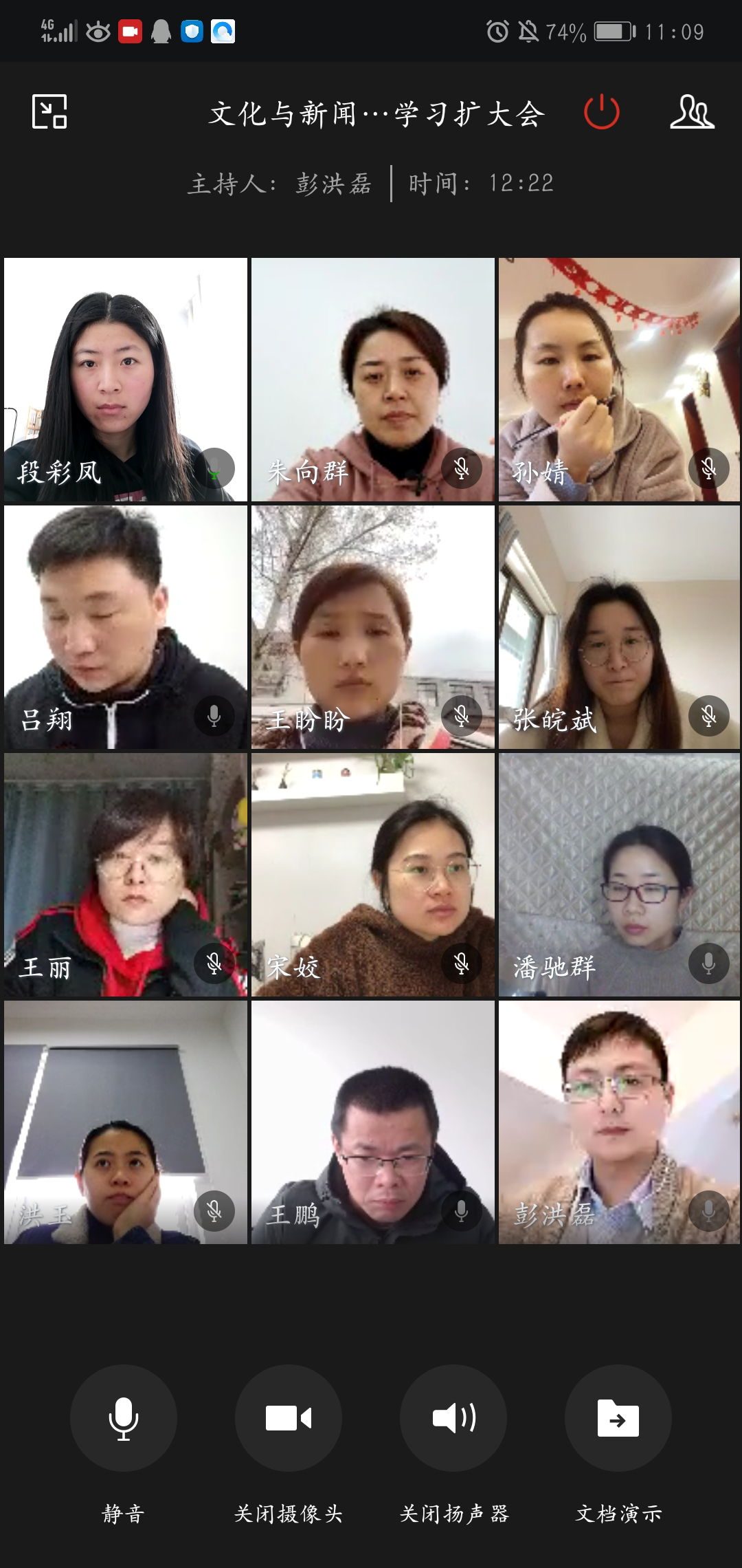 本网讯(通讯员:段彩凤)3月30日,文化与传播学院党总支在企业微信上召开了线上会议,会议主题讨论第33期入党积极分子培训班安排,会议由学院党总支副书记(主持工作)吕翔主持,党总支委员、支部书记、辅导员参加会议。