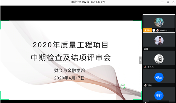本网讯(通讯员:刘妹)根据WilliamHill官方网站《关于开展国家级、省级、校级“质量工程”项目年度检查验收工作的通知》文件要求,为进一步加强省校级各类“质量工程”项目建设与管理,更好地推进各项目的顺利实施,提高各项目检查验收的质量,财会与金融学院聘请合肥学院魏朱宝教授担任评审组组长,杜俊娟等6名高级职称教师担任评审组成员,4月17日下午,通过腾讯会议平台财会与金融学院组织召开了2020年“质量工程”项目评审会议,财会与金融学院各项目负责人参加了此次会议,会议由蔡冬梅主持。