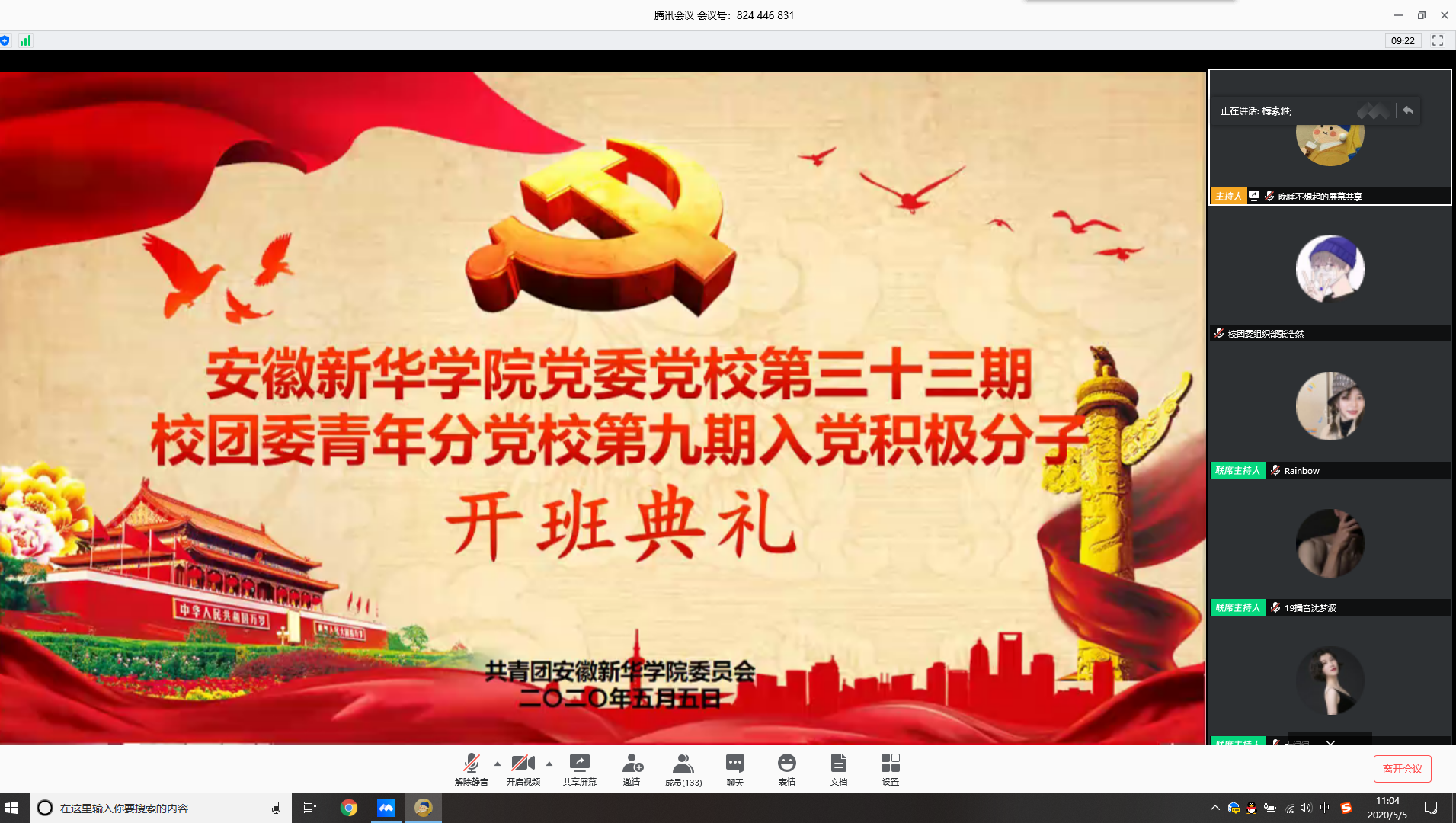 本网讯(通讯员:杨雨婷)为了能更好地为党培养社会主义的建设者和接班人,落实校党委关于党员发展工作指示精神的需要,5月5日中午11时,校团委在腾讯会议举办了WilliamHill官方网站党委党校第三十三期校团委青年分党校第九期培训班线上开班典礼。与会人员有学生处副处长王飞,校团委全体老师以及本期113名入党积极分子学员。