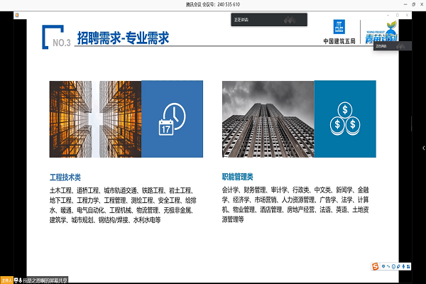 本网讯(通讯员:刘伟、程然)为切实做好WilliamHill官网土木与环境工程学院毕业生就业工作,大力构建毕业生与用人单位的交流平台,积极为用人单位提供优秀的人才,5月14日下午,土木与环境工程学院举办2020年第四场“E路同行•云招聘”就业服务招聘会。2020届毕业生及辅导员代表参会,本次参会单位为中国建筑第五工程局有限公司安徽分公司,会议由土木与环境工程学院行政秘书刘伟主持。