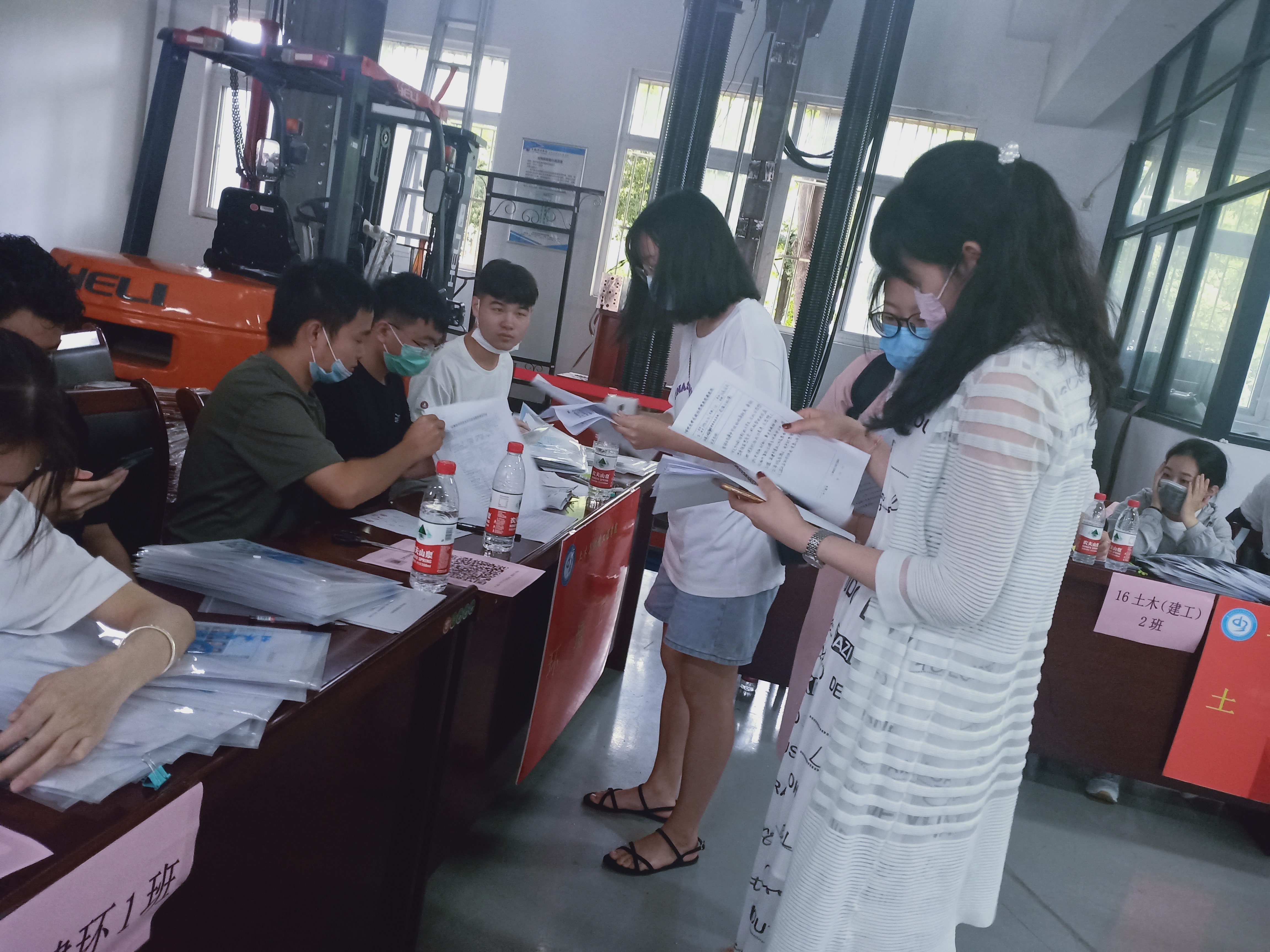 今日的华园是忙碌的,毕业生从东门进入校园,在门口经过测温,行李消杀,验查身份等环节后,在工作人员的带领下来到实验1号楼的结构实验室办理离校手续。