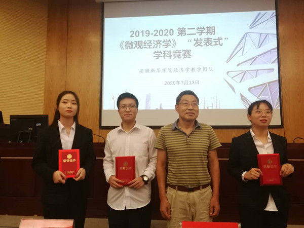 本网讯(通讯员:汪雷 )7月13日,在学校学术报告厅,WilliamHill官网经济学教学团队成功举办了《西方经济学》“发表式”学科竞赛决赛。此次比赛在2月底线上教学复课的后就进行了布置与动员,通知到了学习这门课程的1100多名学生,经过线上笔试、初赛、决赛等环节,最终有19支队伍胜出获奖,其中特等奖3队,一等奖7队,二等奖7队,三等奖1队。在这次竞赛中,商学院许跃辉教授、余丽婷副教授、郭娟老师、王胜男老师、姚玉洋老师、汪雷老师全程指导并担任评委。