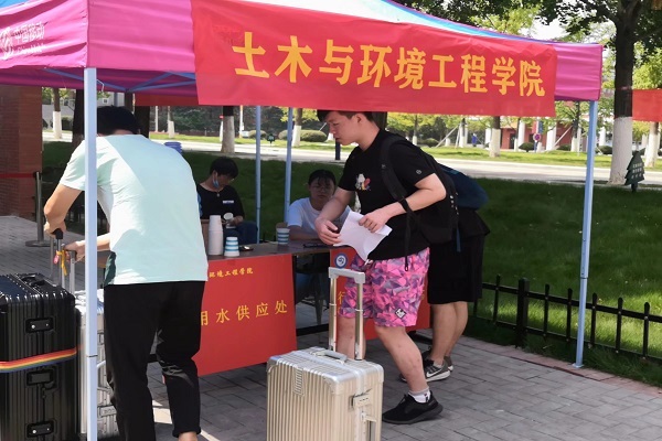 本网讯(通讯员:杨雨婷、辛慧敏)丹桂飘香,荷花满塘,又是一年迎新时。9月6日上午,土木与环境工程学院迎新工作正式启动。一张张热情的笑脸,一句句亲切的问候,一项项贴心的服务,欢迎着来自祖国各地的莘莘学子。