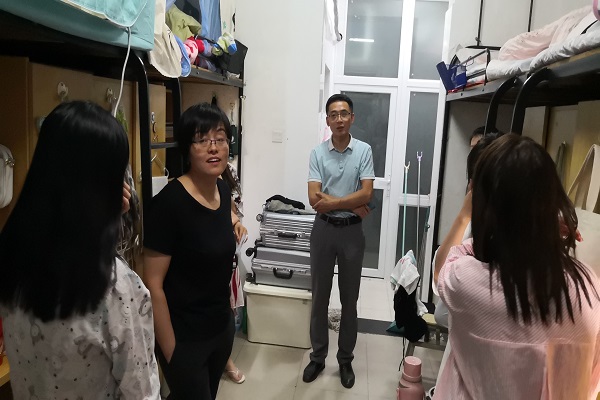 晚间,土木与环境工程学院执行院长邵玲、副院长朱诵贵,辅导员郑晖深入宿舍区慰问学生,叮嘱学生保持良好的身心状态,迎接新的学习生活。
