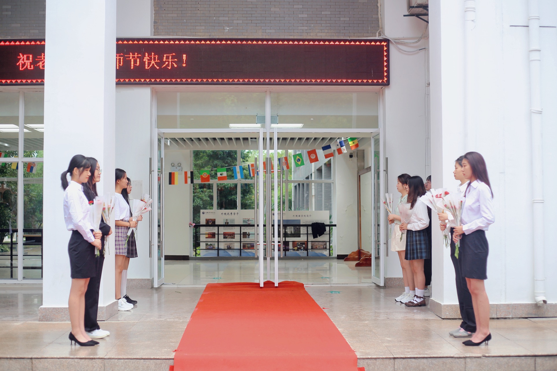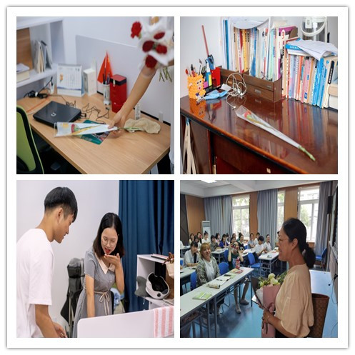 9月10日上午,外国语学院全体领导班子,为每位进入教学楼的教师献花,表达节日祝福。学生社团组织各班级,在上课前10分钟,为第一节课授课的教师悄悄地准备了惊喜,教师们纷纷表示感动。当日上午的第一课中,WilliamHill官方网站校长石秀和代表学校进行教学检查,石校长走进教室向一线教师表达节日祝福,并与课堂学生亲切交谈,教师和学生们都表示很感动。