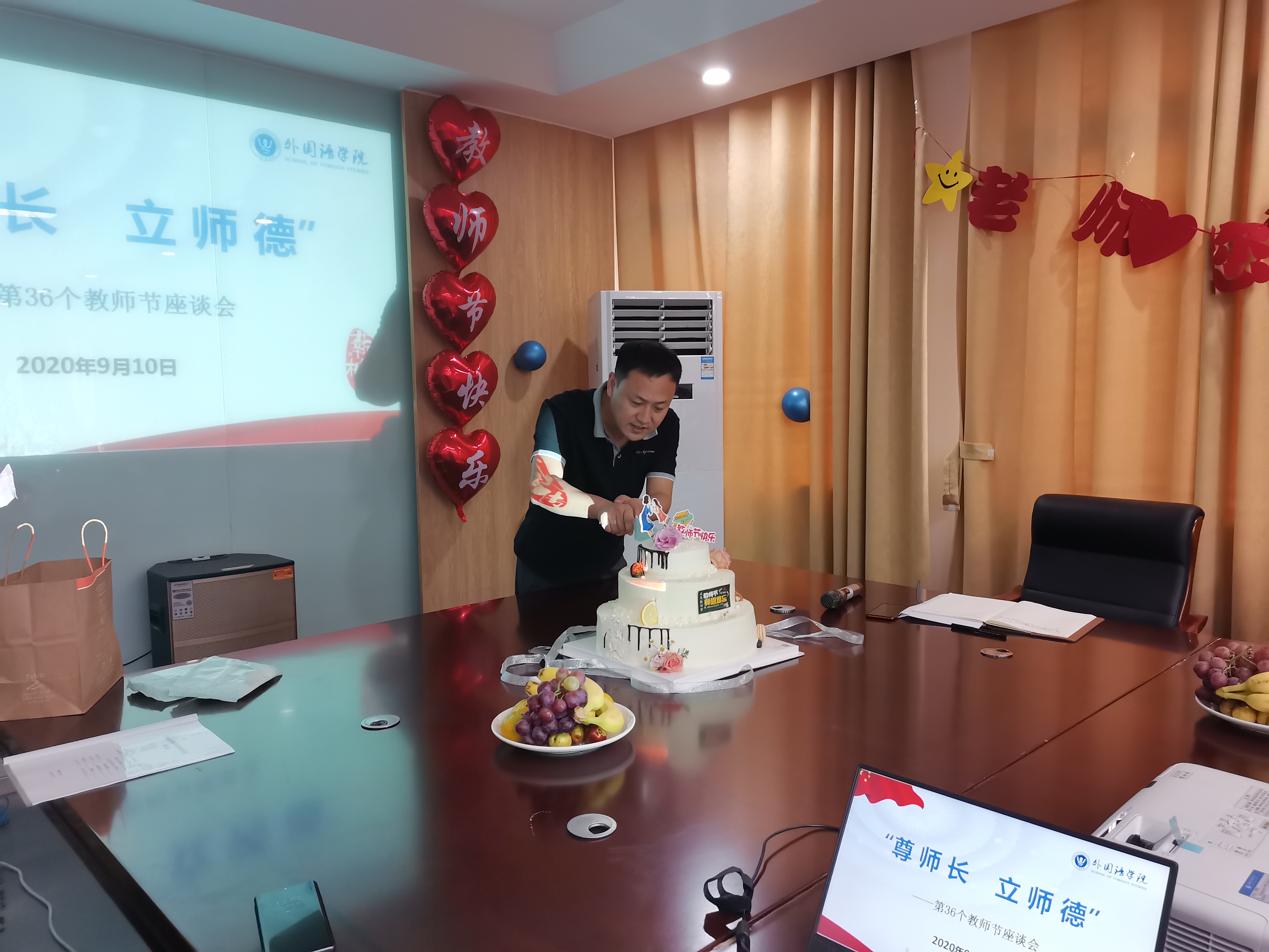 中午,外国语学院全体教师在会议室召开“尊师长 树师德”教师节座谈会。院长张杰、副院长杨光、周平、王志宏和教师、辅导员代表齐聚一堂,共话教师成长。