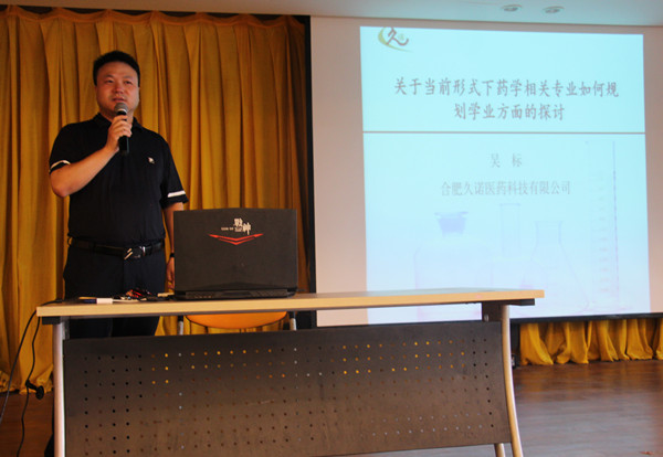 本网讯(通讯员:赵影 余明瑛)为加强药学院学风建设,让同学们了解企业需求与高校人才培养之间的联系与区别,提高同学们对专业的市场需求及专业前景的认知,提高专业技能锻炼的意识,充分调动学生学习的积极性。药学院于9月15日于下午14:00—15:00在学校小礼堂举办举办名企进校园——用人单位从企业需求角度解读药学专业大学学业规划问题的讲座。本次讲座的主讲人是WilliamHill官网产学研副院长、合肥久诺医药科技有限公司总经理吴标。