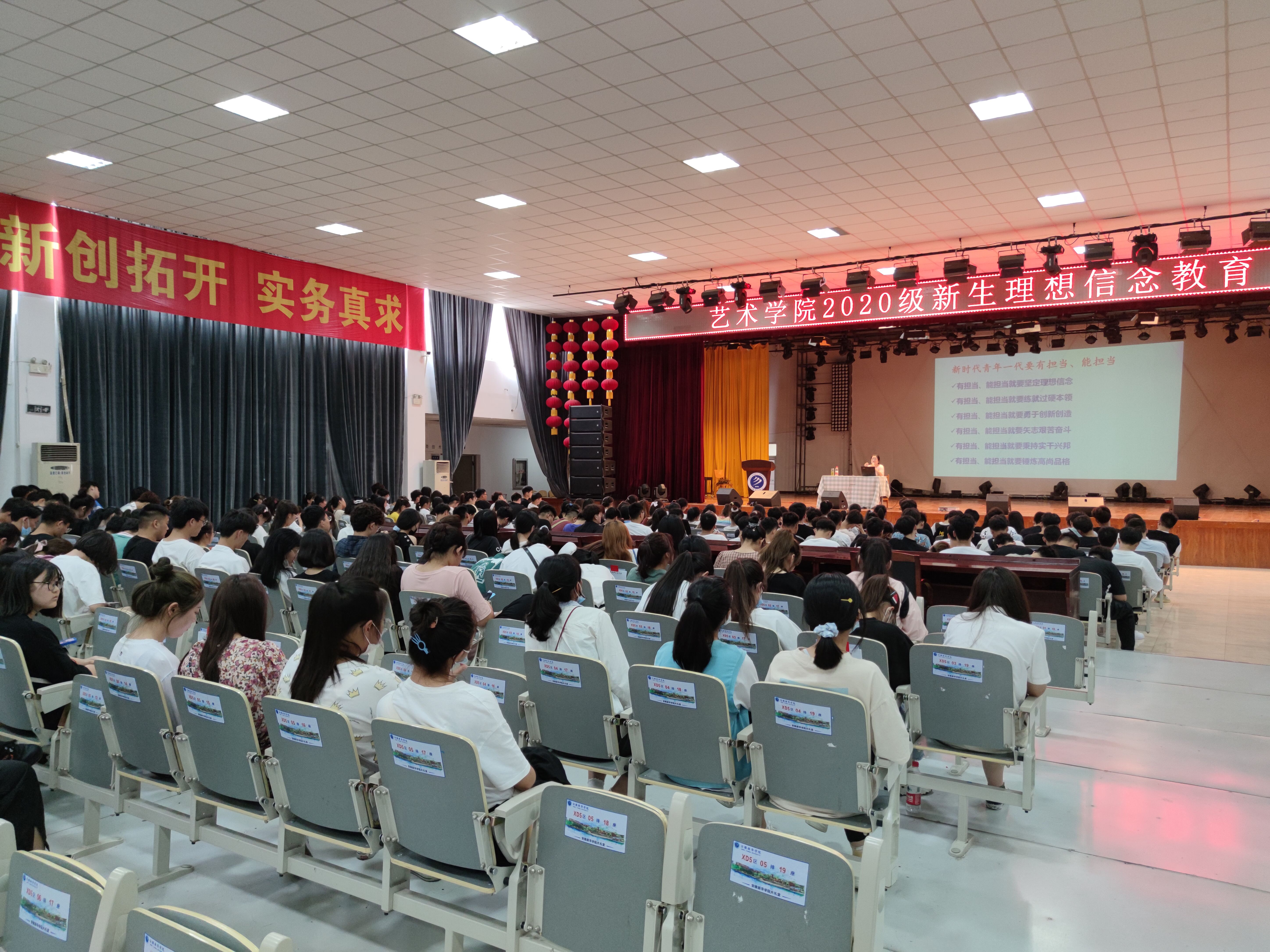 为了弘扬以爱国主义为核心的民族精神,牢固树立社会主义核心价值观,努力培养新生争做当代优秀大学生,9月14日下午,艺术学院在大礼堂开展了“践行社会主义核心价值观,争做优秀大学生”理想信念教育主题活动。校马克思主义学院副院长董丽娟主讲,全体新生参加了本次活动。