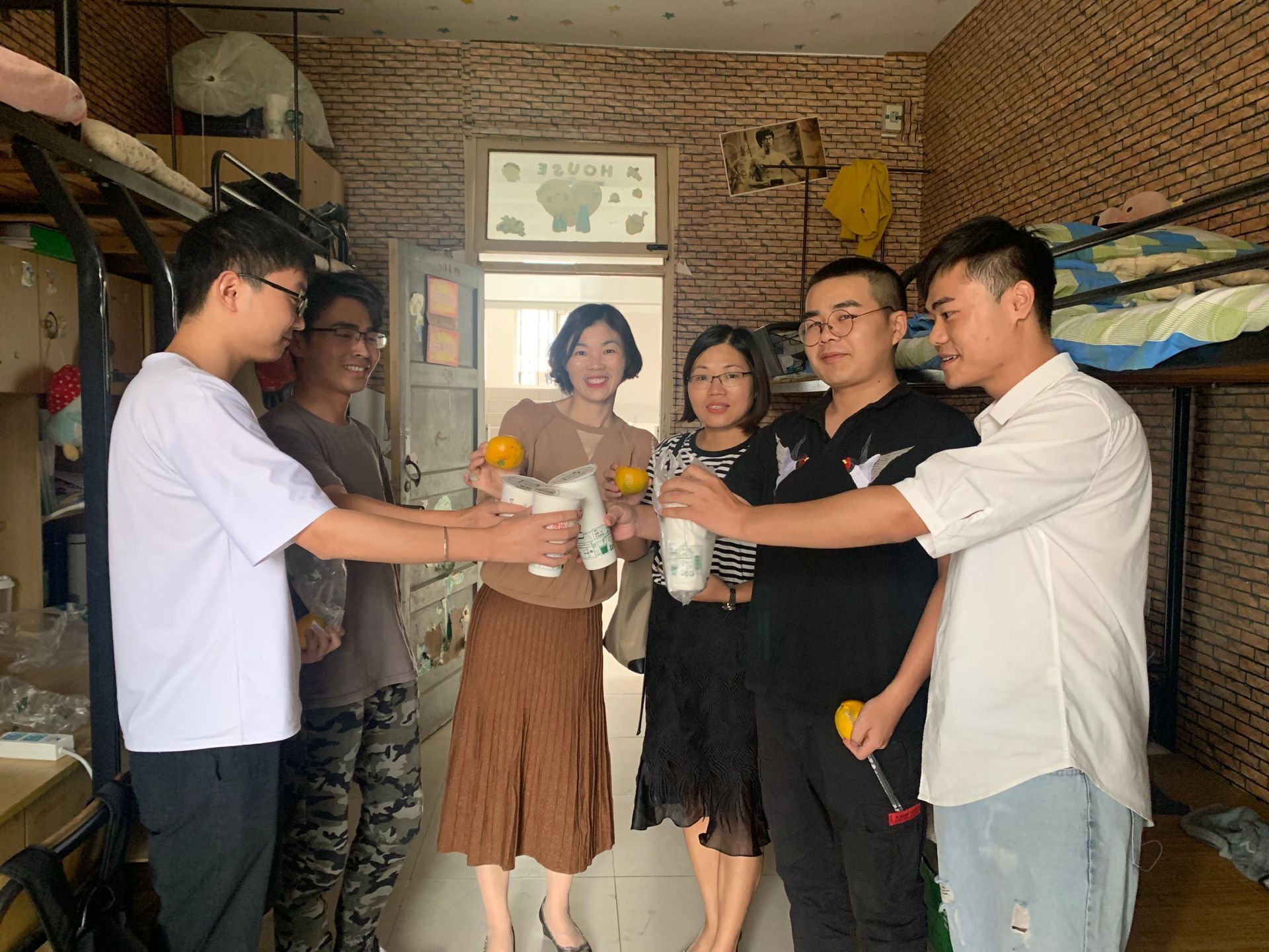 本网讯 (通讯员:徐明月) 金九银十,美丽的华园到处飘散着桂花的清香,金灿灿的阳光也配合着秋高气爽。就在10月1日下午,药学院两位毕业班辅导员——徐明月和李春杰“突袭”到学生公寓,看望假期留校备战考研的学子。她们带上温暖可口的奶茶、新鲜营养的水果,用最亲切最温暖的话语关心他们的备考情况,对他们的付出表示了肯定和高度赞赏;同时也勉励他们在艰苦备战的同时,注意劳逸结合,用积极放松自信的状态步入考场。