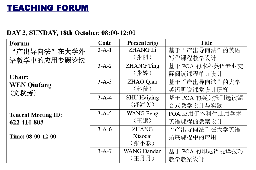 通过参加此次论坛并做汇报发言,张丽老师收获颇丰,更加明确了促成活动的设计要考虑课堂中的可操作性,宁愿少教一点、少一些促成活动,也一定要让学生所学落地生根。论坛聚力POA学习者进一步了解、理解POA,帮助一线教师更好地开展POA教学实践,提升教学质量,致力于解决中国大学生“学用分离”之弊端。
