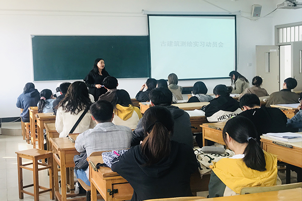 临行前,建筑学系主任周峰、专业指导老师们出席了古建筑测绘动员会,对疫情条件下的防控安排进行了严格的部署,并对教学任务、学生纪律等提出要求,对测绘实习工作的意义给予充分肯定。