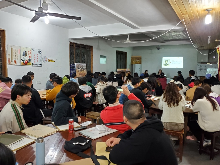 徐公才紧紧围绕 “风景写生中的艺术处理与表现” 主题进行分享,以自身艺术经历为开场,从传统风景绘画的要点与不足、景色的取舍、画面色彩关系的处理、写生及创作等四个方面同学们做了理论与实践相结合的阐述。讲座既为同学们介绍了色彩写生过程的相关知识,又指出了同学们在色彩写生过程中出现的一些问题与误区,并结合自己的艺术创作经历与同学们分享了色彩写生的经验。