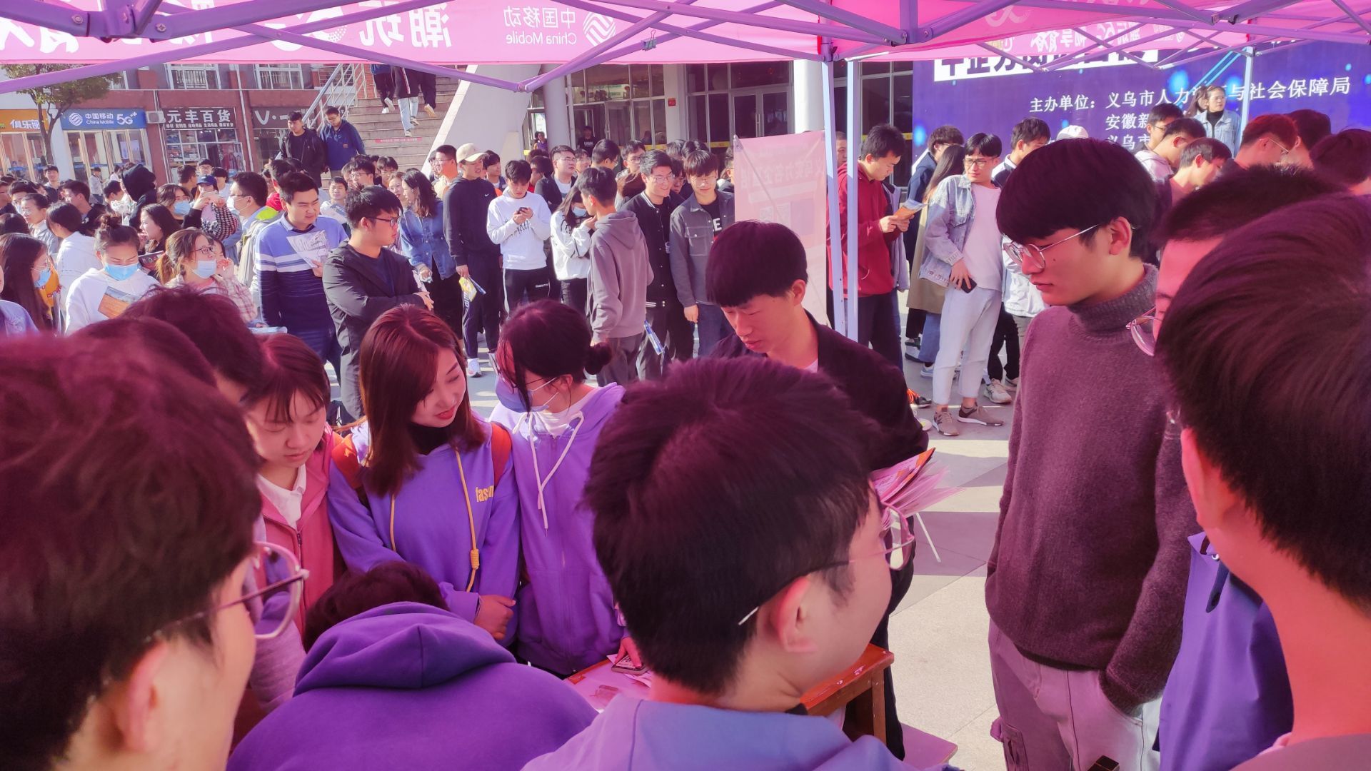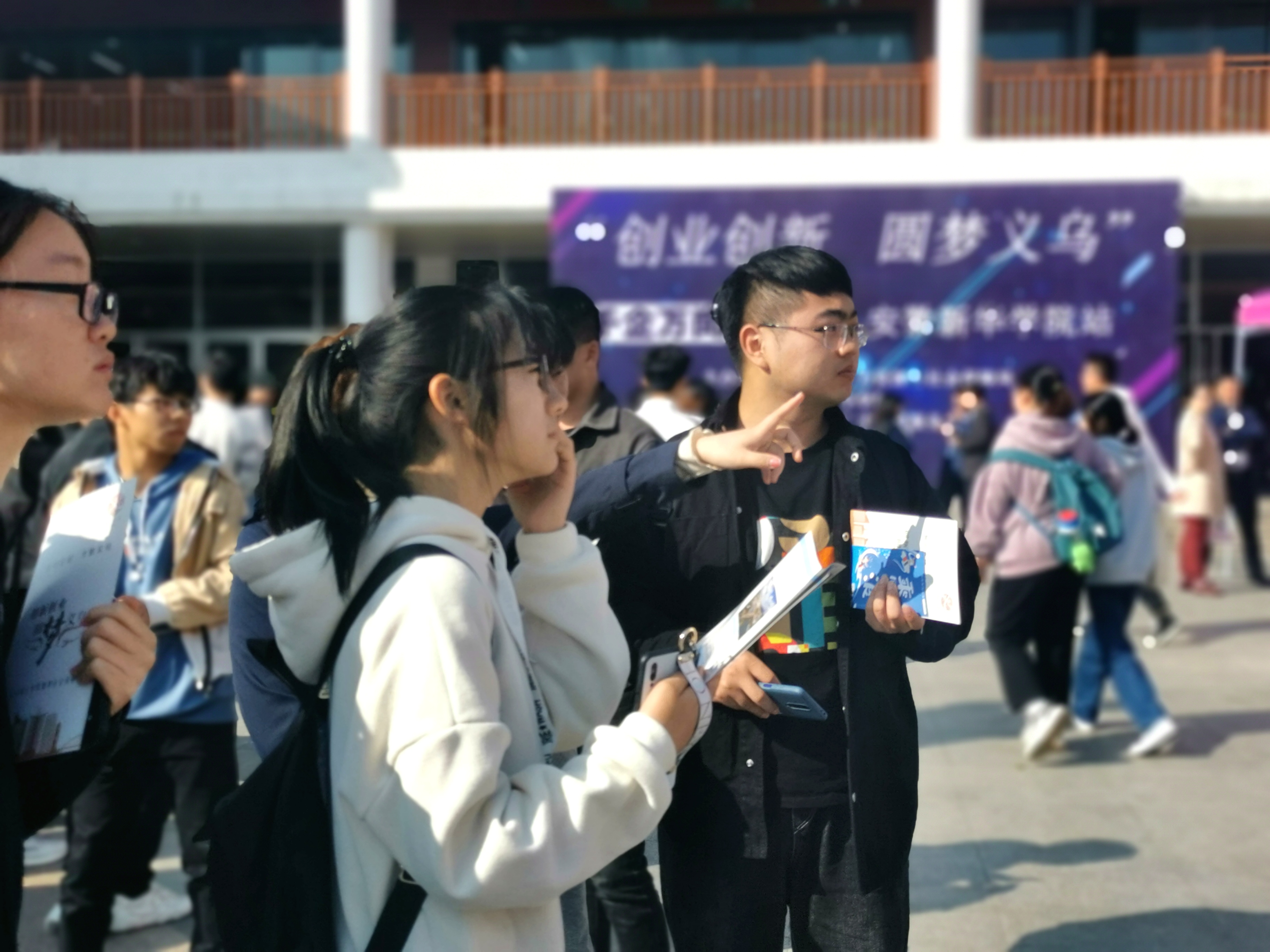 上午10:00,招聘会在翰林广场准时开幕,骆旭伟向参会的毕业生再次介绍了义乌市人才引进的相关政策,同学们根据自己的专业在各展位前与用人单位面对面深入交流,并投递出简历。